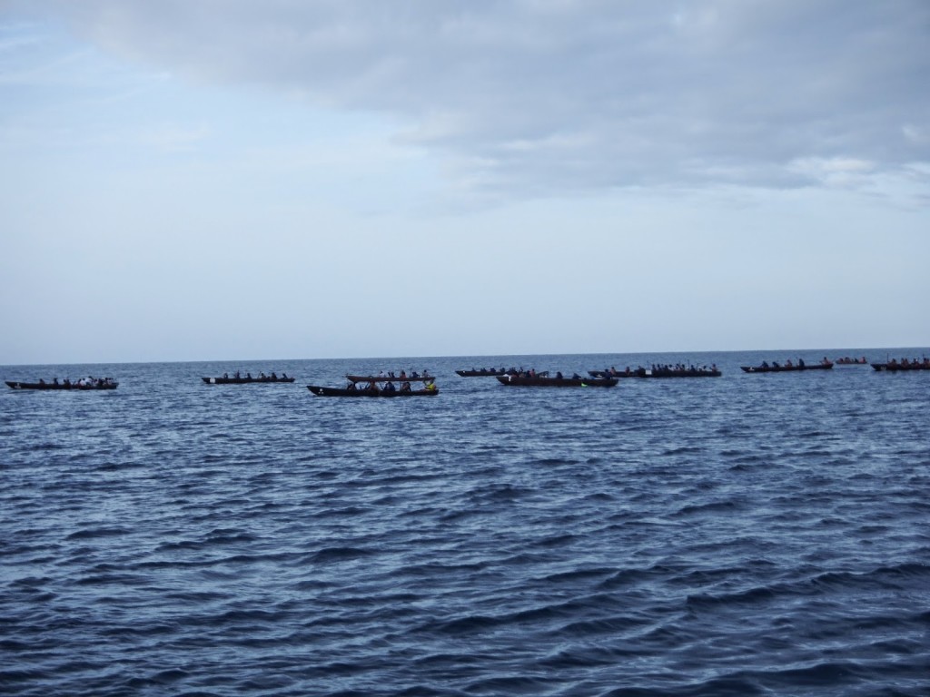 Las canoas aguardan pacientemente a que los guerreros estén listos para ser embarcadas.