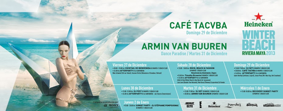 Por 8 años se ha reunido lo mejor de la moda y música en la Riviera Maya, este año del 27 de Diciembre 2013 al 2 de Enero del 2014, Heineken Winter Beach 2013 se celebrara en Mamita’s Beach Club en Playa del Carmen.